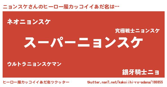 | 男性向けラノベタイトル風あだ名 | 『ニョンスケの憂鬱』 |