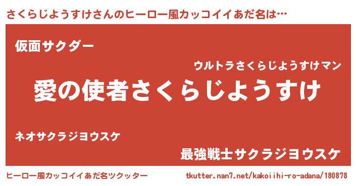 | 男性向けラノベタイトル風あだ名 | 『おまえをオタクにしてやるから、俺をさくらじようすけにしてくれ! 』 |