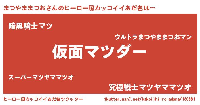 | 男性向けラノベタイトル風あだ名 | 『この素晴らしい世界にまつやままつおを!』 |