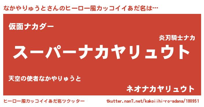 | 胡散臭い通販商品みたいなあだ名 | 『必ず成功する霊験あらたかなお札…その名も「なかやりゅうと」』 |