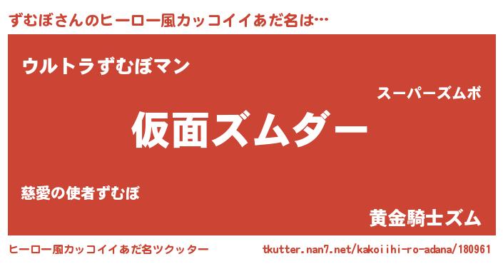 | 男性向けラノベタイトル風あだ名 | 『ずむぼ~年齢イコール彼女いない歴の魔法使い~』 |