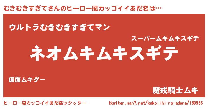 | 男性向けラノベタイトル風あだ名 | 『ムキムキスギテスレイヤー』 |