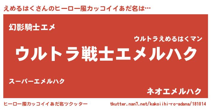 | 男性向けラノベタイトル風あだ名 | 『エメルハクスレイヤー』 |