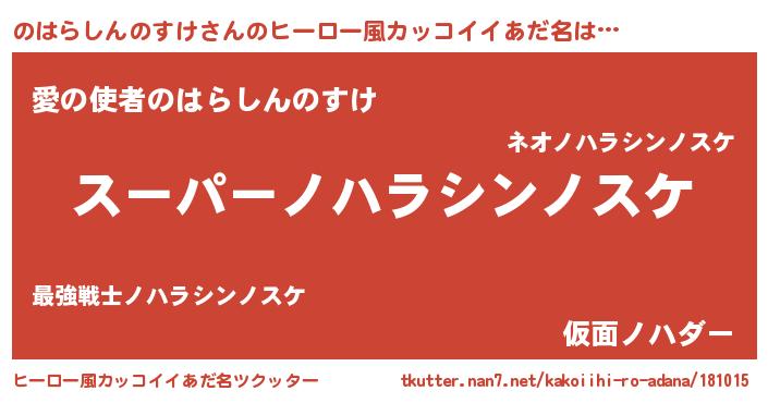 | 男性向けラノベタイトル風あだ名 | 『ノハラシンノスケアートオンライン』 |