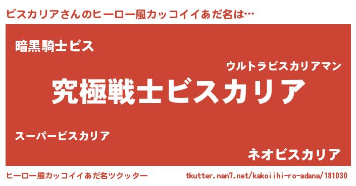 | 男性向けラノベタイトル風あだ名 | 『Re:ビスカリアから始める異世界生活』 |