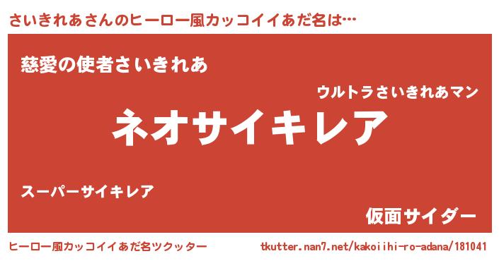 | 意味不明あだ名 | 『永久保存さいきれあ』 |