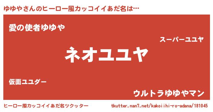 | 男性向けラノベタイトル風あだ名 | 『ゆゆやという概念が存在しない退屈な世界 』 |
