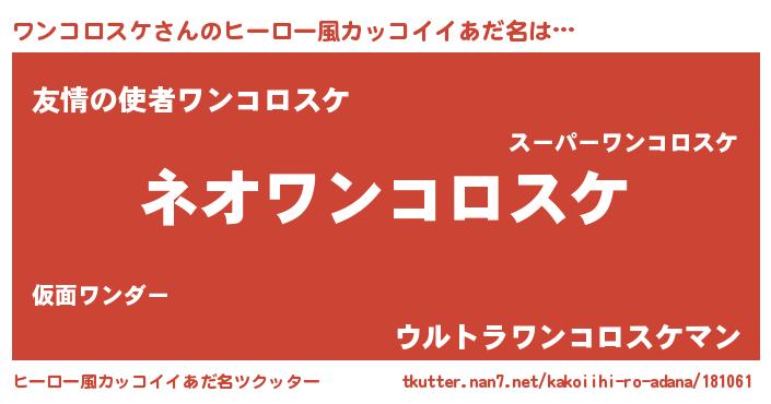 | 胡散臭い通販商品みたいなあだ名 | 『絶対に幸福をもたらす健康食品…その名も「ワンコロスケ」』 |