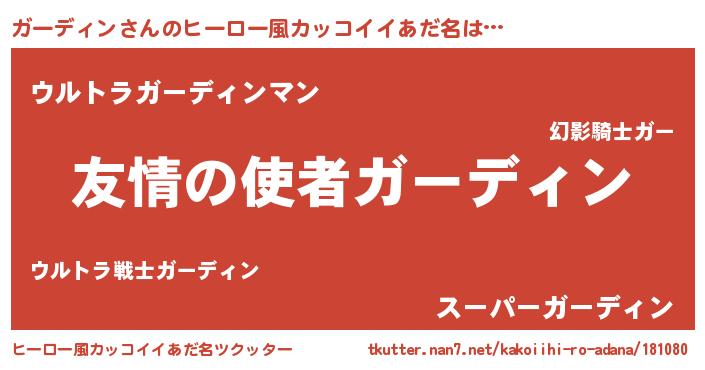 | 男性向けラノベタイトル風あだ名 | 『おまえをオタクにしてやるから、俺をガーディンにしてくれ! 』 |