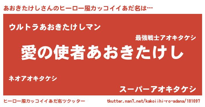 | 女子向けラノベタイトル風あだ名 | 『あおきたけし恋絵巻』 |