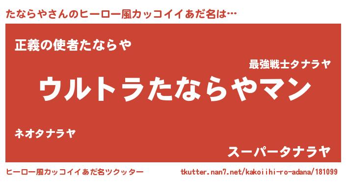| 意味不明あだ名 | 『たならやフォーエバー』『自称たならや』 |