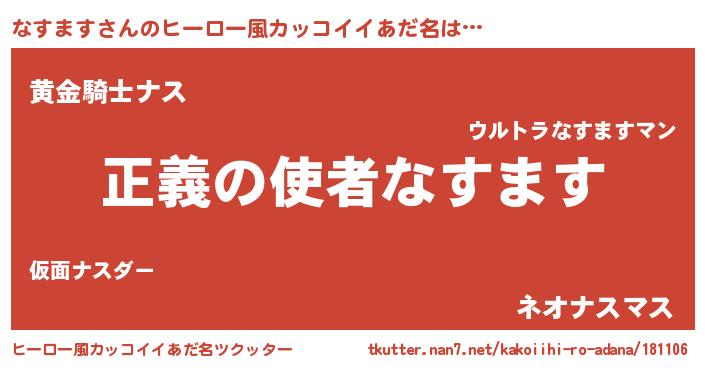 | ヘコむあだ名 | 『なすぷりん』『なすます(小並感)』 |