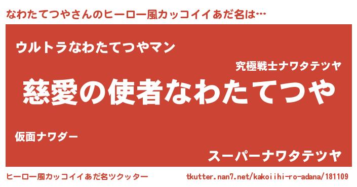 | 男性向けラノベタイトル風あだ名 | 『ノーゲーム・ノーナワタテツヤ』 |