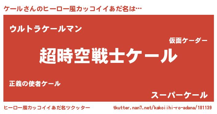 | 女子向けラノベタイトル風あだ名 | 『ケールなんてお断りですっ。』 |