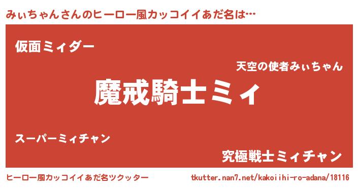 | 女子向けラノベタイトル風あだ名 | 『みぃちゃんの卵を拾いまして』 |
