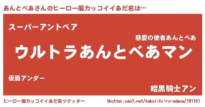 | 男性向けラノベタイトル風あだ名 | 『やはりあんとべあの青春ラブコメはまちがっている 』 |