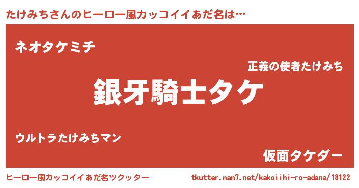 | 女子向けラノベタイトル風あだ名 | 『たけみちの卵を拾いまして』 |