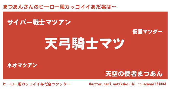 | 胡散臭い通販商品みたいなあだ名 | 『全米が絶賛したサプリメント…その名も「まつあん」』 |