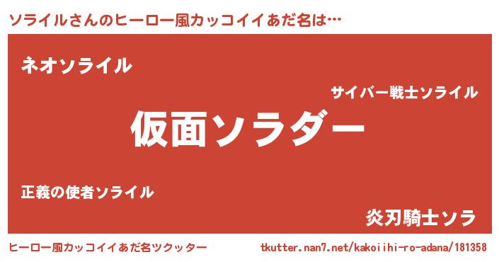 | 意味不明あだ名 | 『住所不定無職ソライル(3歳)』 |