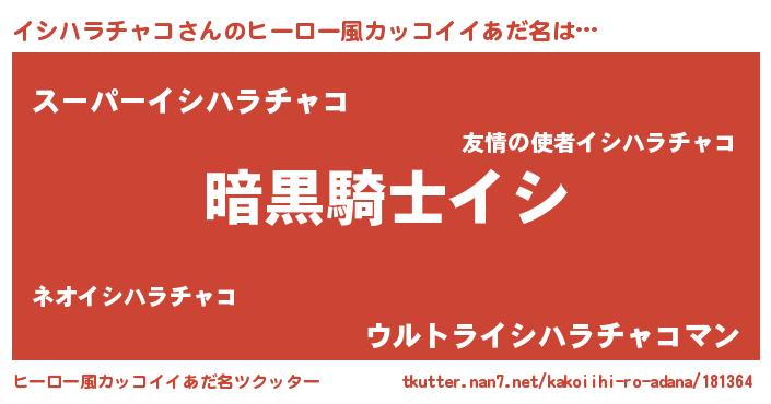 | 欧米人風あだ名 | 『イシハラチャコ・ステッグマイヤー』 |