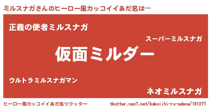 | ヘコむあだ名 | 『ミルスナガ(笑)』『ミルにゅー』 |