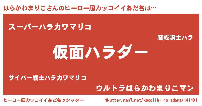 | 料理風あだ名 | 『はらかわまりこごはん』 |