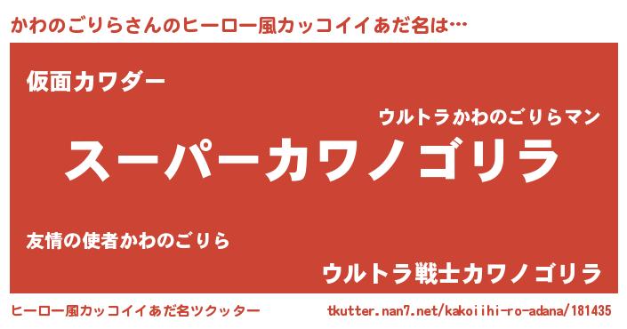 | 男性向けラノベタイトル風あだ名 | 『カワノゴリラアートオンライン』 |
