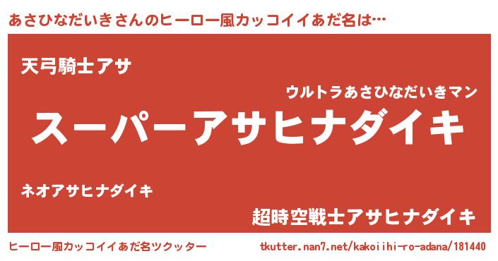 | 恥ずかしいあだ名 | 『プリティーあさひなだいき』『あさちん』 |
