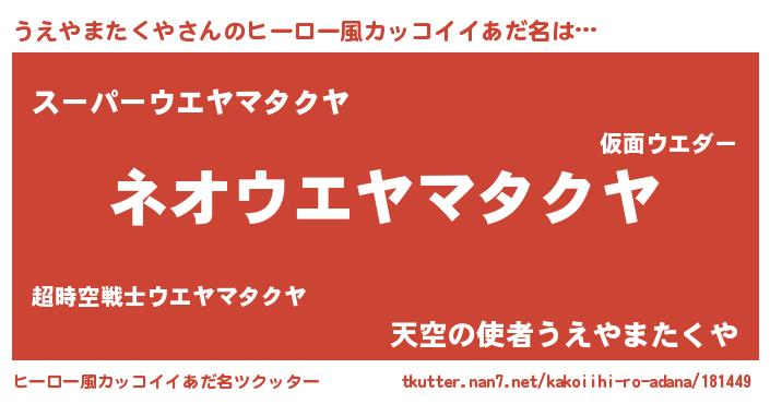 | ヘコむあだ名 | 『うえやまたくや(苦笑)』『うえにー』 |