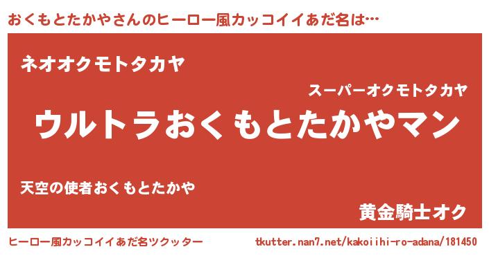 | ファンタジー風あだ名 | 『エターナルオクモトタカヤー』 |