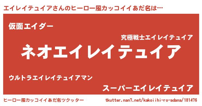 | ヘコむあだ名 | 『エイレイテュイア(笑)』『エイっふぃ~』 |