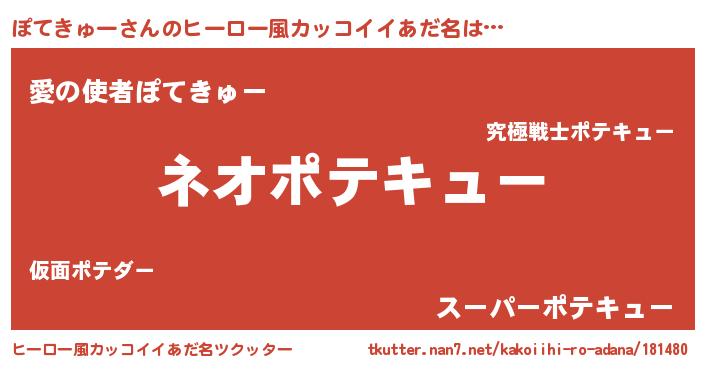 | 男性向けラノベタイトル風あだ名 | 『誰もが恐れるあのぽてきゅーが、ぼくの専属メイドになるようです。』 |