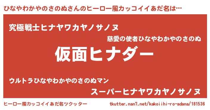 | 女子向けラノベタイトル風あだ名 | 『ひなやわかやのさのぬが死なない童話 林檎のひなやわかやのさのぬの診療簿』 |