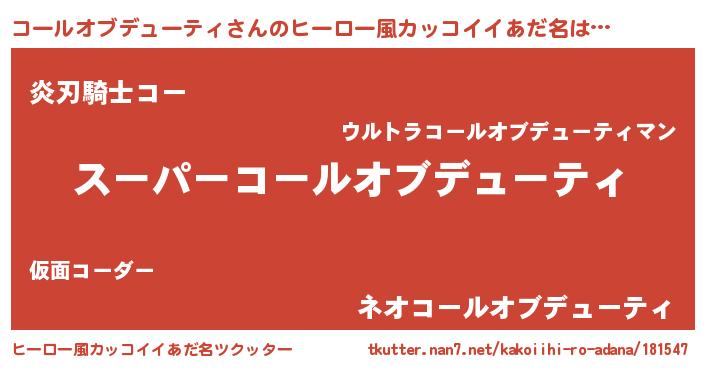 | 伝説のあだ名 | 『封印されし竜騎士コールオブデューティ』 |