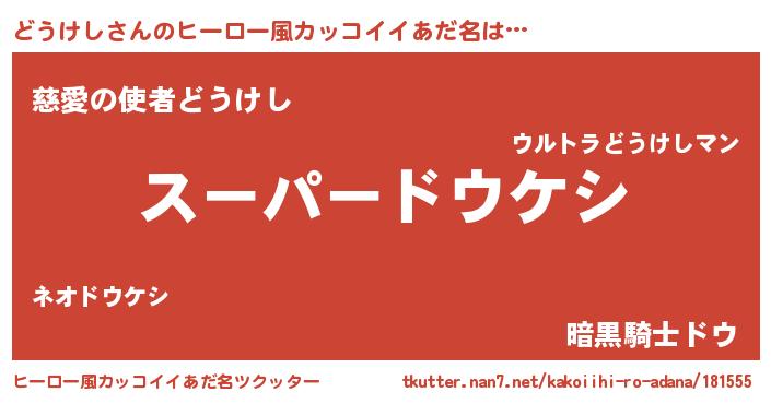 | 男性向けラノベタイトル風あだ名 | 『どうけしに滅ぼされるだけの簡単なお仕事です』 |