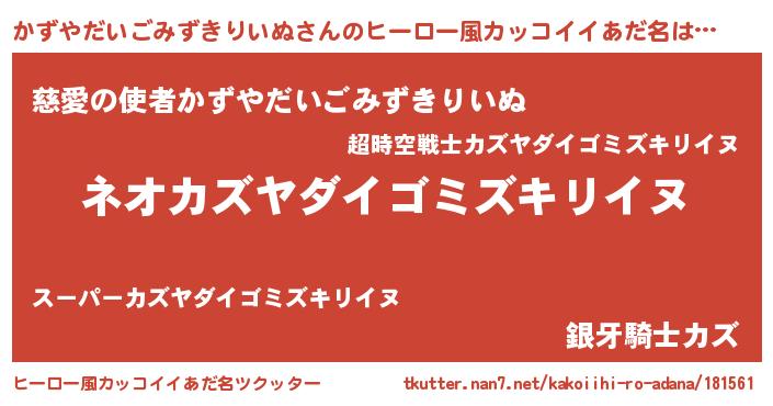 | 意味不明あだ名 | 『永久保存かずやだいごみずきりいぬ』 |