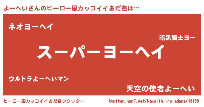 胡散臭い通販商品みたいなあだ名 | 『億万長者になれる水晶球…その名も「よーへい」』 |