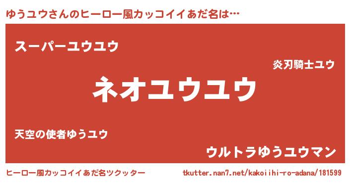 | ヘコむあだ名 | 『ゆうユウ(小並感)』『ゆうにー』 |