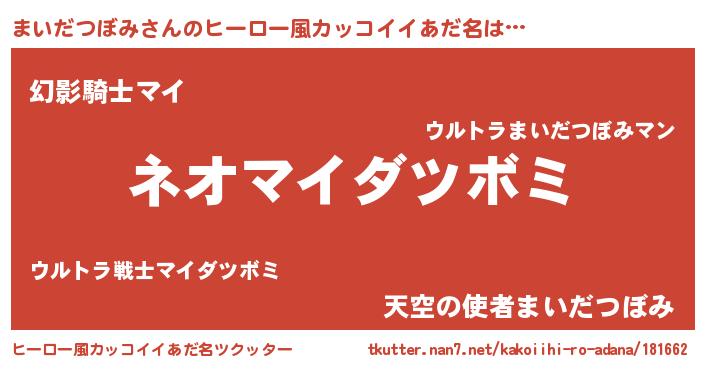 | 男性向けラノベタイトル風あだ名 | 『まいだつぼみに滅ぼされるだけの簡単なお仕事です』 |