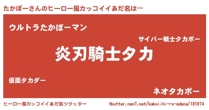 | 胡散臭い通販商品みたいなあだ名 | 『全米が絶賛したサプリメント…その名も「たかぼー」』 |