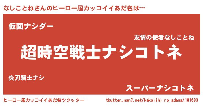 | 女子向けラノベタイトル風あだ名 | 『なしことねなんてお断りですっ。』 |