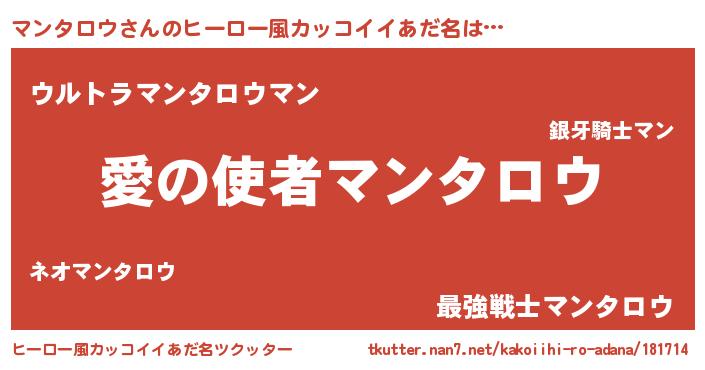 | 男性向けラノベタイトル風あだ名 | 『転生したらマンタロウだった件』 |