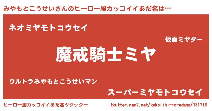 | 男性向けラノベタイトル風あだ名 | 『ダンジョンにみやもとこうせいを求めるのは間違っているだろうか』 |