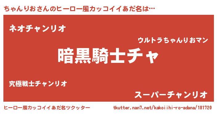 | 胡散臭い通販商品みたいなあだ名 | 『信頼と実績のサプリメント…その名も「ちゃんりお」』 |