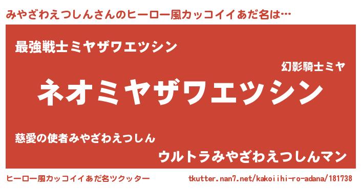 | 意味不明あだ名 | 『永久保存みやざわえつしん』 |