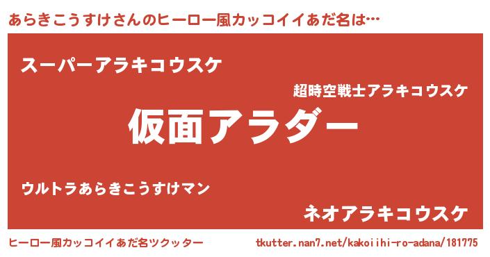 | 男性向けラノベタイトル風あだ名 | 『魔弾の王とあらきこうすけ』 |