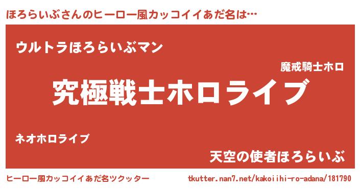 | 男性向けラノベタイトル風あだ名 | 『Re:ほろらいぶから始める異世界生活』 |