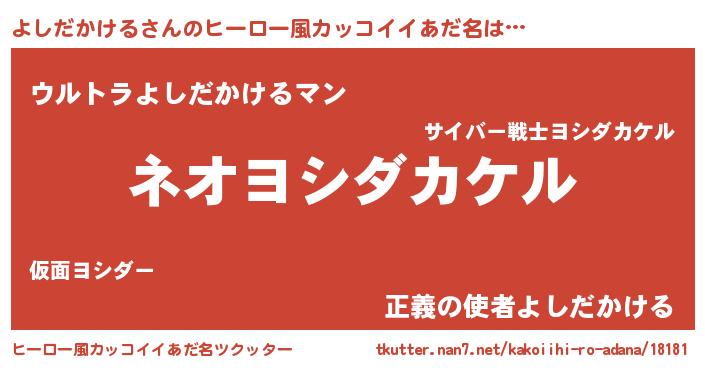| 胡散臭い通販商品みたいなあだ名 | 『絶対に幸福をもたらす健康食品…その名も「よしだかける」』 |