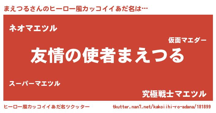 | 男性向けラノベタイトル風あだ名 | 『おまえをオタクにしてやるから、俺をまえつるにしてくれ! 』 |