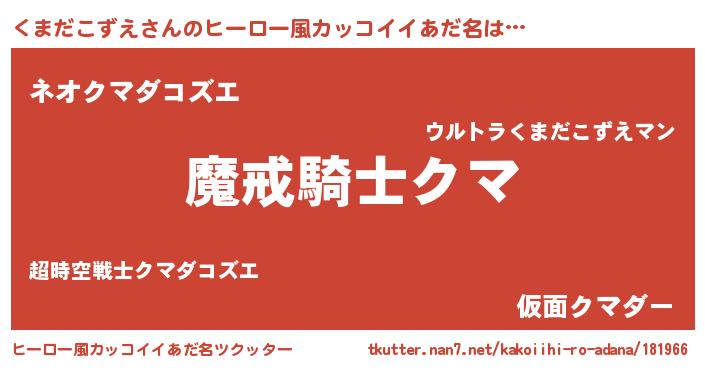| ヘコむあだ名 | 『くまを』『くまだこずえ(小並感)』 |